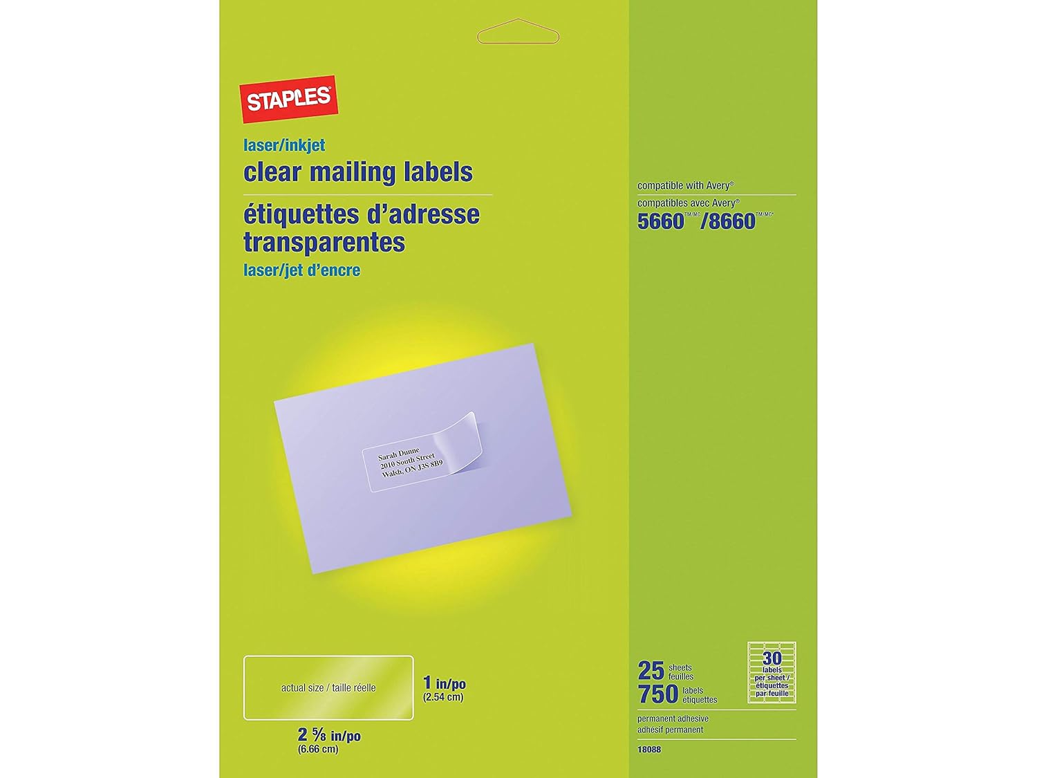 Amazon.com : AVE5660 - Avery Easy Peel Address Label : Office Adhesives ... Avery 5660 Laser Labels, Address, 1-Inch x2-5/8-Inch, 1500/BX, Matte Clear 13 11 offers from $43.56 Amazon Basics Color Printing 4 3/4 x 7 3/4 Inch White Labels, 50-Pack 133 1 offer from $7.38 Avery Address Labels with Sure Feed for Laser & Inkjet Printers, 1" x 2-5/8", 750 Labels - Great for FBA Labels (18260) 9,827 4 offers from $7.98