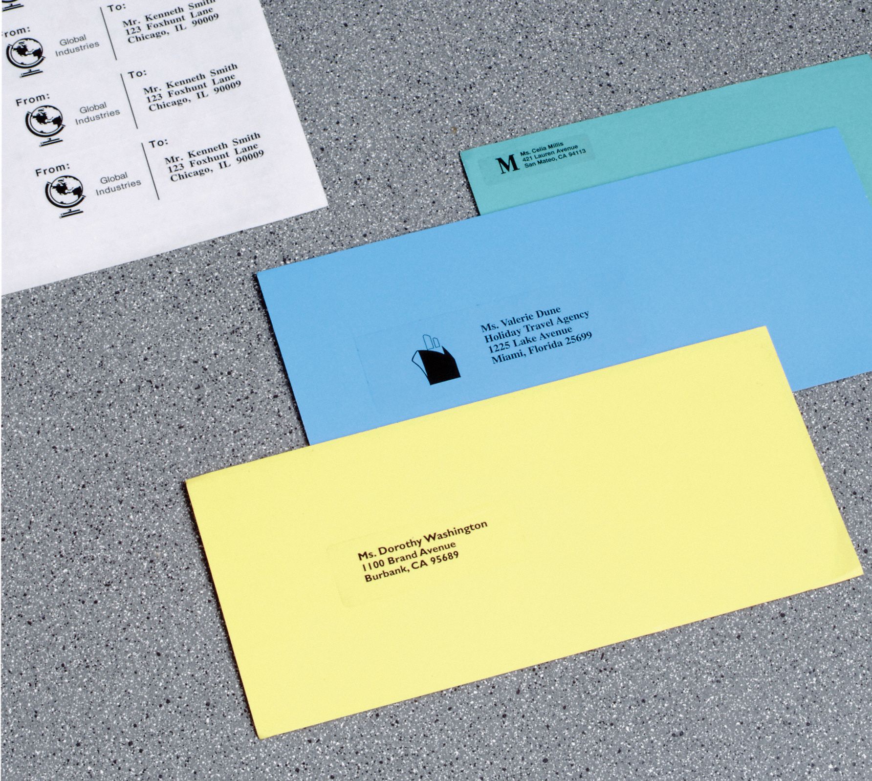 Avery Laser Address Labels, Sure Feed Technology, 1" x 2 5/8", Matte ... These address labels make your most important messages stand out Individual labels measure 1"H x 2 5/8"W Clear labels virtually disappear on white, light-colored, and textured surfaces $66.99 1500/box $0.04/Label Delivered FREE tomorrow Next -Day eligible Order within 10 hrs 17 mins 1-Hour pick up Free Returns Add to cart