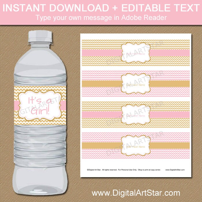 Free printable water bottle labels for baby shower. 25 Baby Shower Decorations You Can Print for Free - The Spruce Using free, printable baby shower decorations will save you money and time, and you still can have the shower looking fabulous. These free decorations can be hung on walls or set on tables. There are all kinds of free banners, signs, favor boxes, water bottle labels, and tags that will help you have the party looking great. 32 Free Water Bottle Label Templates For Any Occasion Take your child's birthday party theme to the next level with custom water bottle labels. Find the design that matches your theme and personalize to meet your needs. Adjust the colors, add their name, and more. Then hand out unique water bottle labels throughout the party or in the goody bag. Both parents and kids will love them! Starry Night Blue or Pink Chevron Water Bottle Labels - Free Printable To Use Pink & Blue Chevron Water Bottle Labels: Print the labels on Bright White Glossy Text Paper. This works the best. I use the HP Envy 5540 Wireless All-In-One Printer and signed up for HP Instant Ink. I highly recommend this! Sweet Baby Girl: Free Printable Candy Bar Labels. This free printable labels will be good as well for having interesting gift ideas, due this labels work also quite well for giving unique gifts ideas for the baby, gifts ideas for the mother, the new dad or the parents together...gifts like: a personalized Basket of Goodies, Cupcakes or Cakes with lovely notes at the toppers, Lollipops with special labels, personalized Chocolates, Bottles with ...