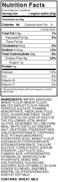English muffin food label