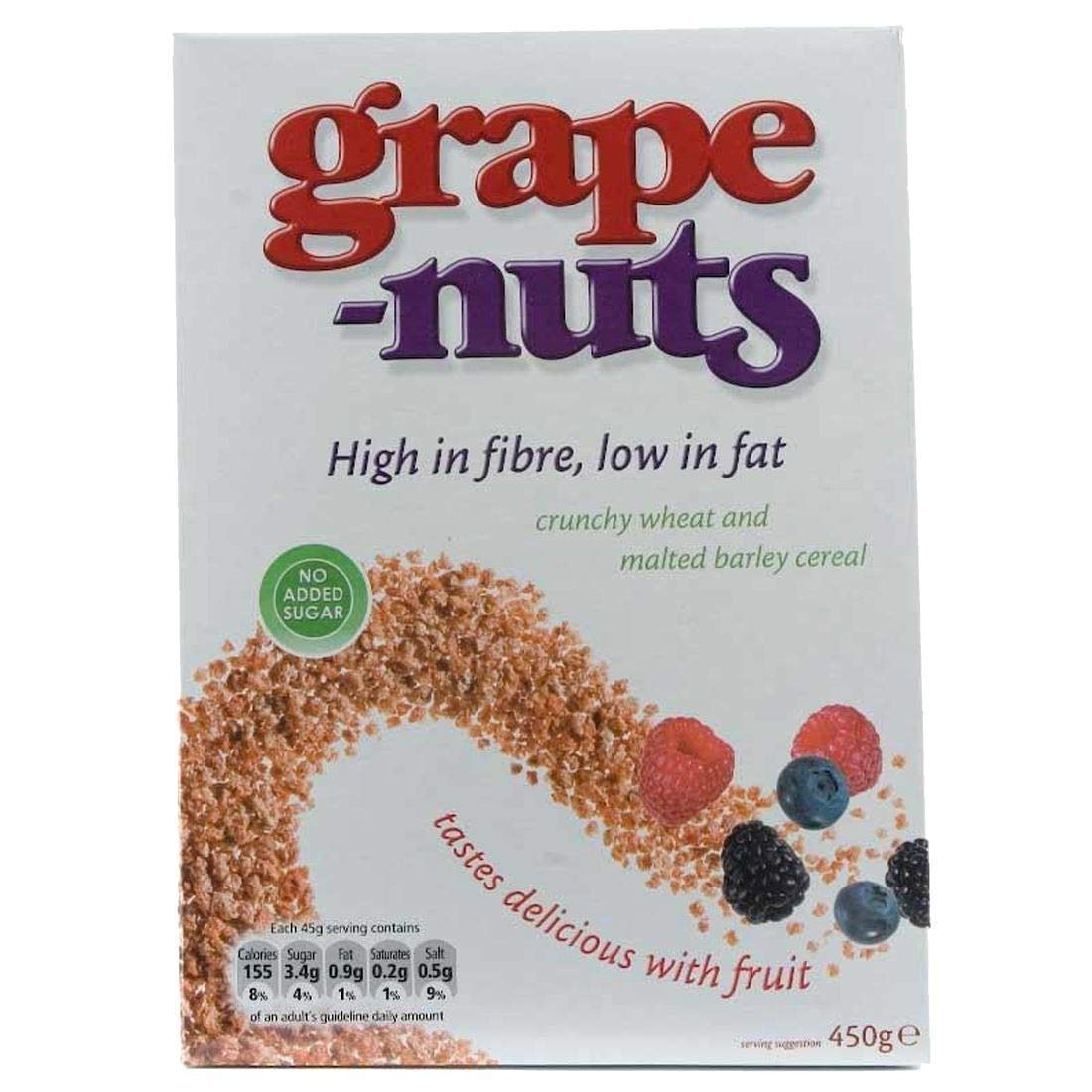 Post Grape-Nuts Cereal, 24-Ounce Boxes (Pack of 4) Pack of four 24-ounce boxes of Post Grape-Nuts Cereal Whole grain, 52g per serving; 100% of your day's whole grains Excellent source of fiber, 7g per serving Low in fat, 0g trans fat, and cholesterol free Provides 12 essential vitamins and minerals New (2) from $33.99 & FREE Shipping. Similar item to consider