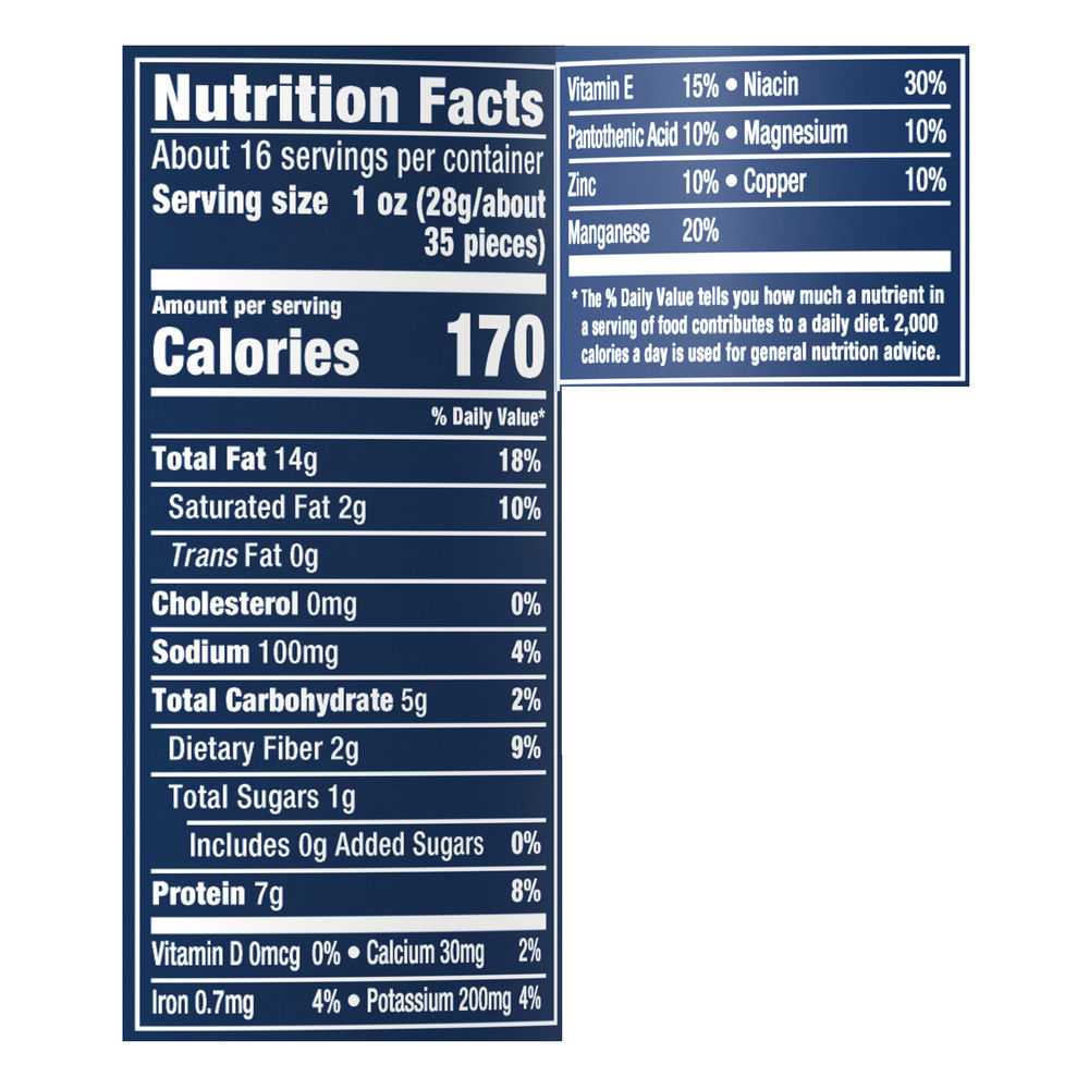 Planters peanut nutrition label. Are Planters Peanuts Gluten Free? - Club Gluten Free These peanuts are very healthy, so you will find them in grocery stores all over the world. You can even buy them online at Amazon.com. Planters is an international company, so they are known for having a wide variety of snacks. Planters nuts are gluten-free, which means that they are free of gluten, a protein found in wheat and barley. Planters Salted Peanuts, 2.5 oz Pack - Walmart.com Nutrition facts. Refer to the product label for full dietary information, which may be available as an alternative product image. 1.0 Servings Per Container. Serving Size 1 pack (70g) ... Planters Salted Peanuts follow the original Planters recipe everyone knows and loves. With a legendary taste and satisfying crunch, these peanuts are made ... EWG's Food Scores | Planters Dry Roasted Peanuts EWG's Shopper's Guide to Pesticide in Produce Ingredient List From the Package PEANUTS, CONTAINS LESS THAN 2% OF SEA SALT, SPICES (CONTAINS CELERY), DRIED ONION, DRIED GARLIC, PAPRIKA, NATURAL FLAVOR, SUGAR, CORN STARCH, GELATIN, TORULA YEAST, MALTODEXTRIN, DRIED CORN SYRUP. Product Images Planters Peanuts Cocktail 16oz Can | Garden Grocer Planters Cocktail Peanuts. GardenGrocer.com obtains nutritional information from claims made by the products' manufacturers on labels. We have made every effort to be as accurate as possible; however we do suggest that you continue to read labels as ingredients are subject to change and we cannot be responsible for individual reactions to any products.