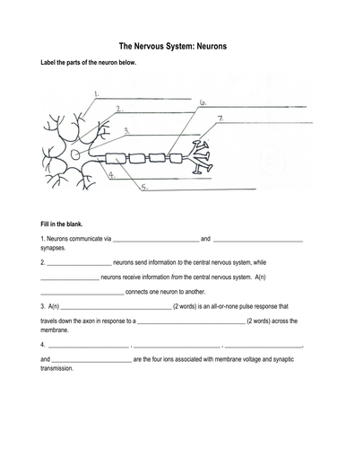Neuron Label Worksheet Teaching Resources | Teachers Pay Teachers it can be used with any biology, anatomy & physiology, psychology, or ap psychology course.the worksheet contains six major sections: 1) students color and label a neuron, 2) students complete a diagram of the subdivisions of the nervous system and answer some function questions, 3) students complete a neurotransmitter chart, 4) students make …