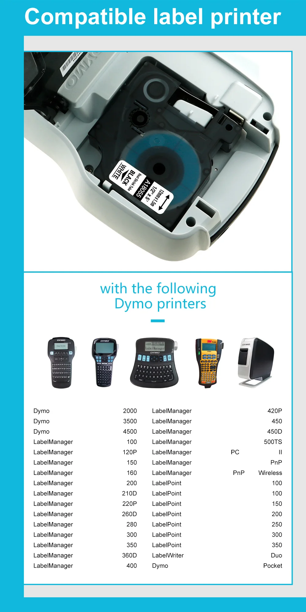 Compatible with DYMO Label Maker Refills D1 Label Cassette 45013 S0720530 Fit for Dymo LabelManager 160 Label Maker Tape Black on White 1/2 Inch x 23 ...