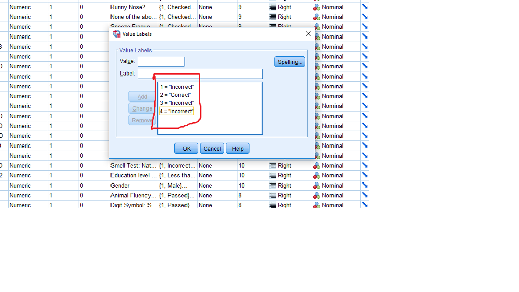 Display Value Labels in SPSS - Easy SPSS Tutorial Quick Steps Click on tab to display Variable View Identify your variable, click on its cell in the Values column, and then click on the ellipsis Enter your first coded numerical value where it says Value, and the label you want associated with that value where it says Label Press Add, and then repeat for all further numerical values