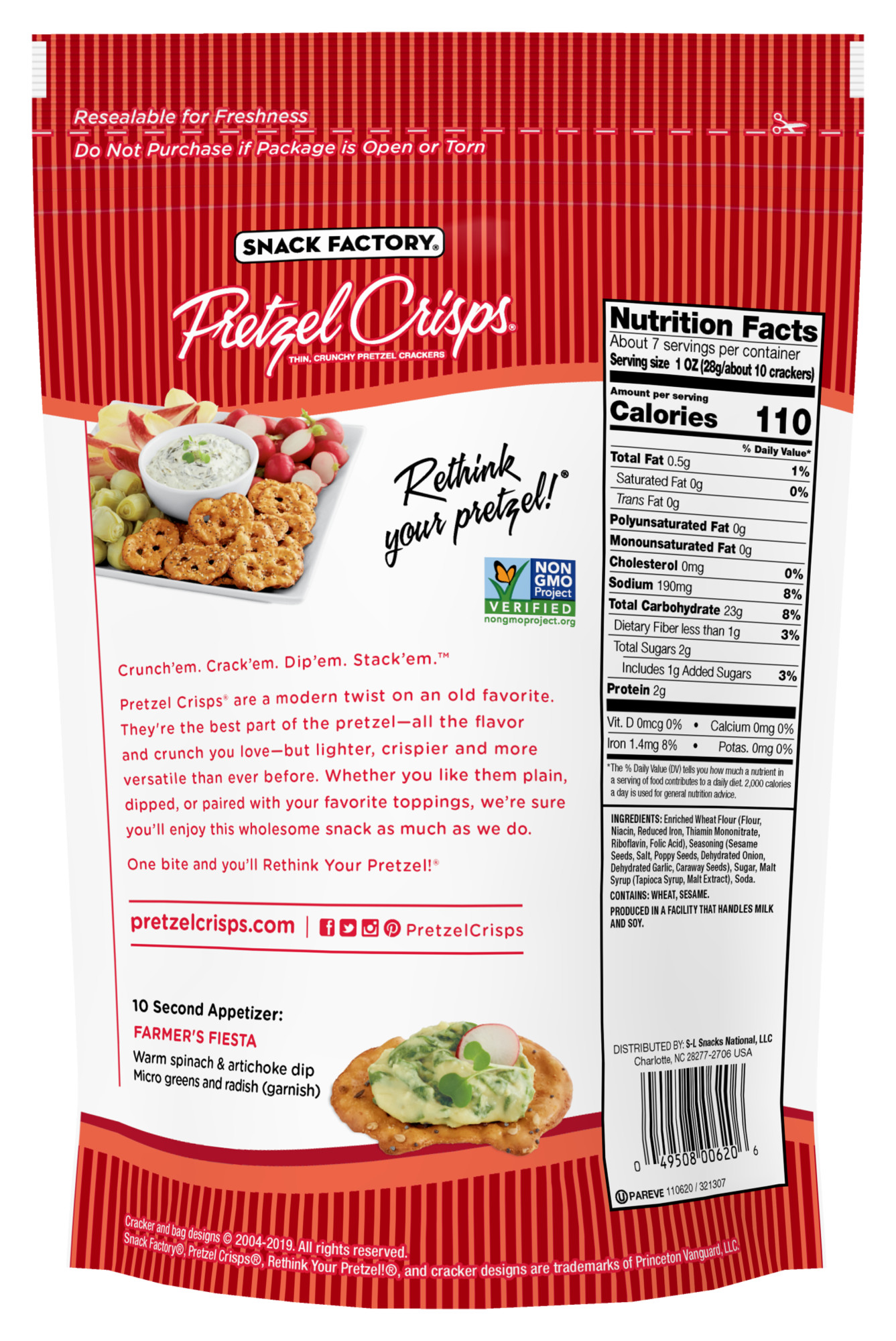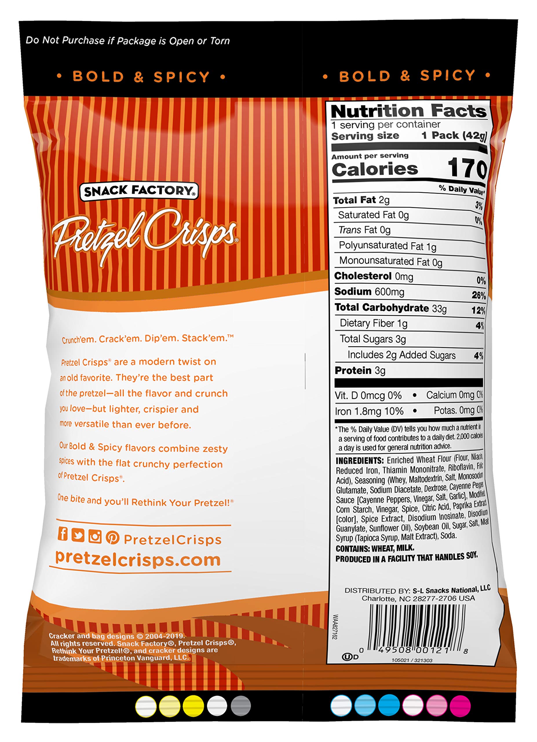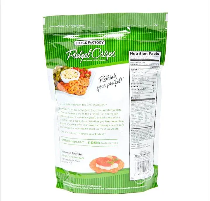 Snack Factory Pretzel Crisps Bites, Spicy Ranch Pretzels, 12 Oz ... Nutrition facts. Refer to the product label for full dietary information, which may be available as an alternative product image. 12.0 Servings Per Container. ... Snack Factory Pretzel Crisps bite-sized bold pretzels come in a resealable 12-oz. bag and a variety of flavors, providing you with a great-tasting snack that is perfect for movie ... Snack Factory Pretzel Crisps Nutrition Information | Besto Blog Kroger Snack Factory Gluten Free Original Pretzel Crisps 5 Oz Snack factory original organic pretzel crisps chips at h e b snack factory pretzel crisps original large party size 14 oz 35 pretzel crisps nutrition label labels database 2020 testing snack factory deli style garlic parmesan pretzel crisps. Whats people lookup in this blog: Snack Factory Pretzel Crisps, Everything, 7.2 oz - Walmart.com Nutrition facts. Refer to the product label for full dietary information, which may be available as an alternative product image. 7.0 Servings Per Container. ... Snack Factory Everything Pretzel Crisps are a modern twist on two old favorites - pretzels and bagels. Made with quality ingredients and baked up thin and crunchy, they're sprinkled ... Pretzel Crisps Pretzel Crackers Original Deli Style Allergy and ... Pretzel Crisps Pretzel Crackers Original Deli Style Contains: soy, Milk, May Contain: soy, Milk, UPC Code 049508007302 Manufactured by Snack Factory Inc. ... Nutrition Label. Nutrition Facts. Serving Size 11.00 Crackers. Amount Per Serving. Calories 110 Calories from Fat 0 % Daily Value* Total Fat 0g. 0%. Saturated Fat 0g. 0%.