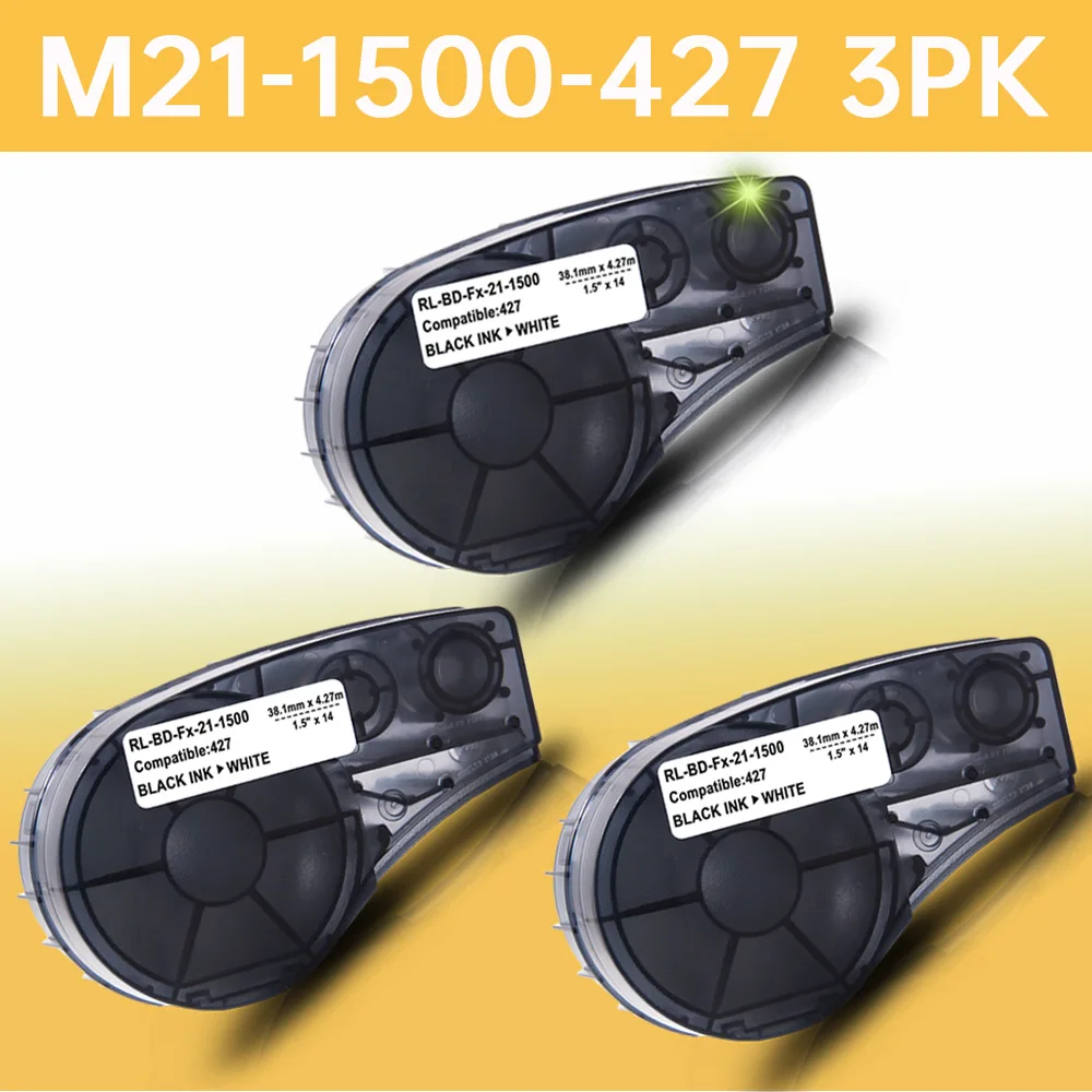 19.1 Mm * 6.4 M Kompatibel untuk Brady BMP21PLUS Idpal Labpal Label Printer Adhesi Tinggi Vinyl Label Tape M21-750-595 Hitam di Kuning