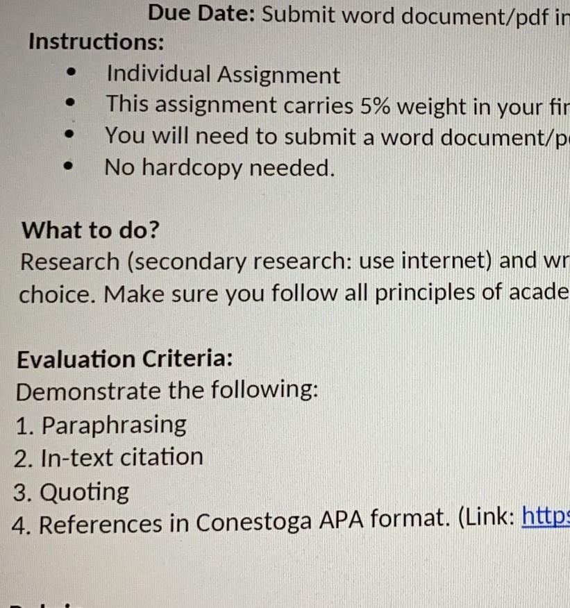 Using APA @ Conestoga in Course Content - Faculty Learning Hub Feb 10, 2023 ... While some programs use specific citing and referencing style guides, most programs use the APA @ Conestoga style. APA @ Conestoga Sample Paper - Smoking Cessation - Scribd APA Conestoga - Sample - Free download as PDF File (.pdf), Text File (.txt) or read online for free. sample apa. Referencing: Citation Style Guides (APA, MLA, Chicago) APA Formatting — Purdue Owl Online Writing Lab · APA @ Conestoga · APA in Minutes: Video Tutorials — Humber Libraries · APA Sample Paper (note the References page ...